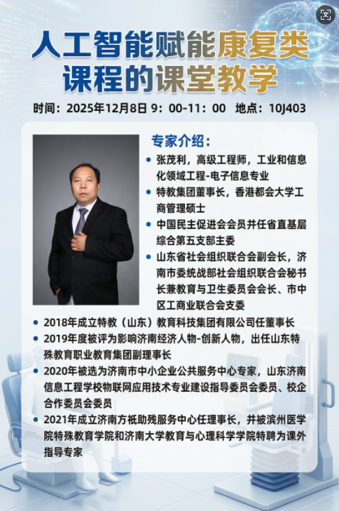 济大论坛 智赋教学 2025年第6期预告:人工智能赋能康复类课程的课堂教学